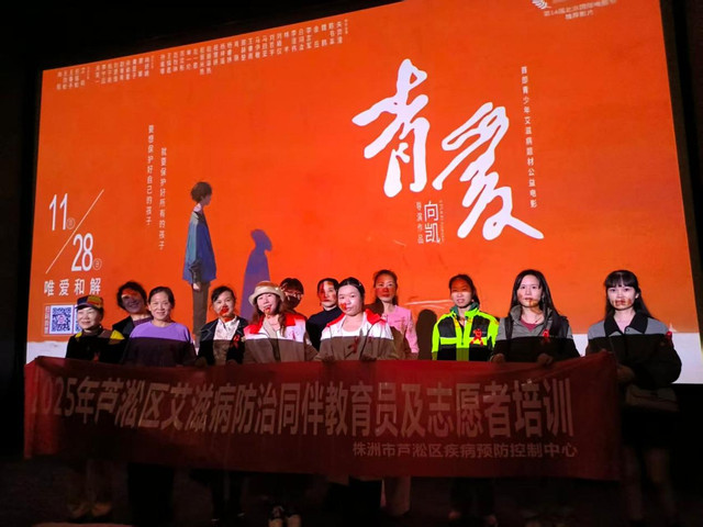 此次培训采用“电影院里的一堂防艾课”形式,组织观看国内首部聚焦青少年防艾题材的点映电影《青爱》。该片由北京青爱教育基金会历时6年精心打造,基于青爱工程20年深耕青少年艾滋病防治教育一线的实践经验,以真实人物经历为蓝本,通过两位少年自我救赎与被救赎的动人故事,艺术化地展现了青少年防艾教育的紧迫性与现实关怀。